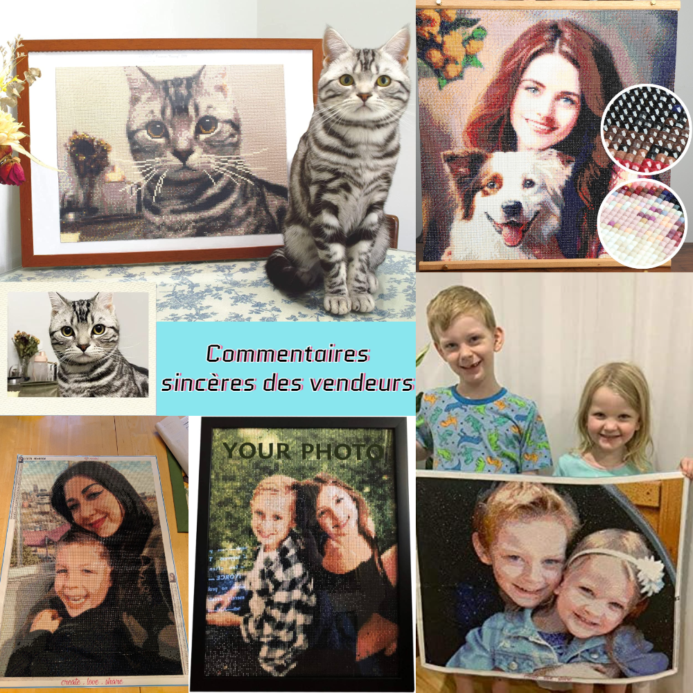 La peinture diamant personnalisé est un artisanat qui consiste à coller de petits diamants en résine colorés sur une toile pré-imprimée. Ces diamants sont disponibles en différentes tailles, formes et couleurs, imitant l'effet de vrais diamants. La toile, qui comporte une couche adhésive collante, est conçue avec un motif ou une image spécifique. Lorsque vous placez chaque diamant sur le symbole correspondant sur la toile, l'image prend lentement vie, scintillant à chaque mouvement.