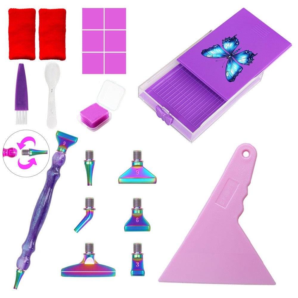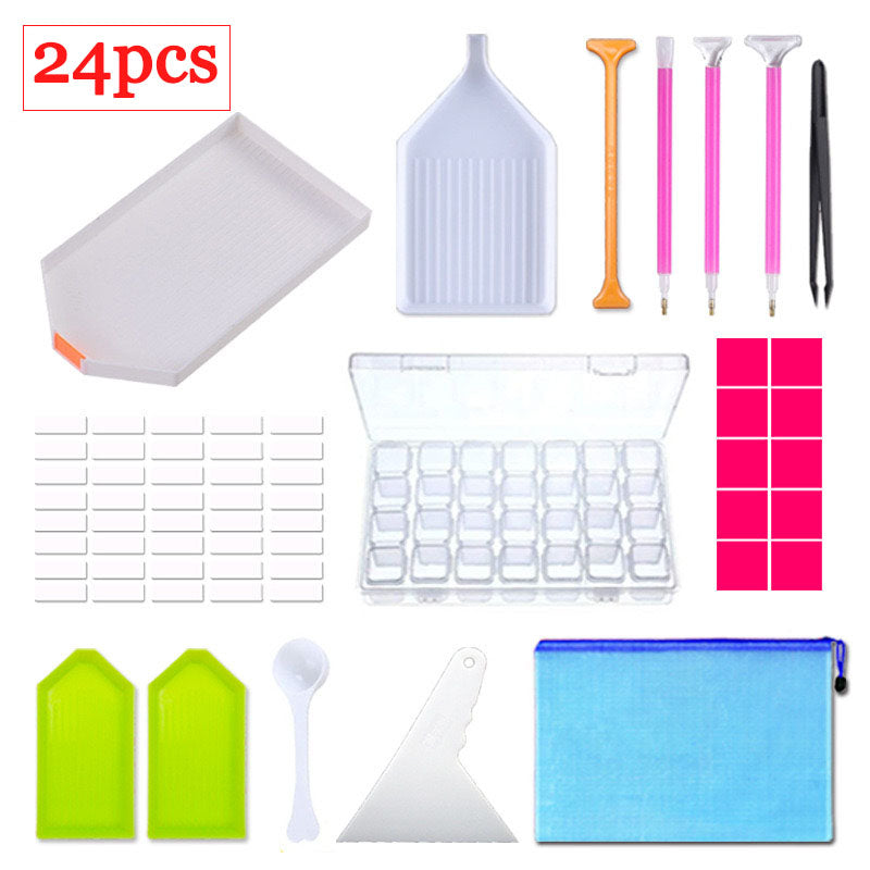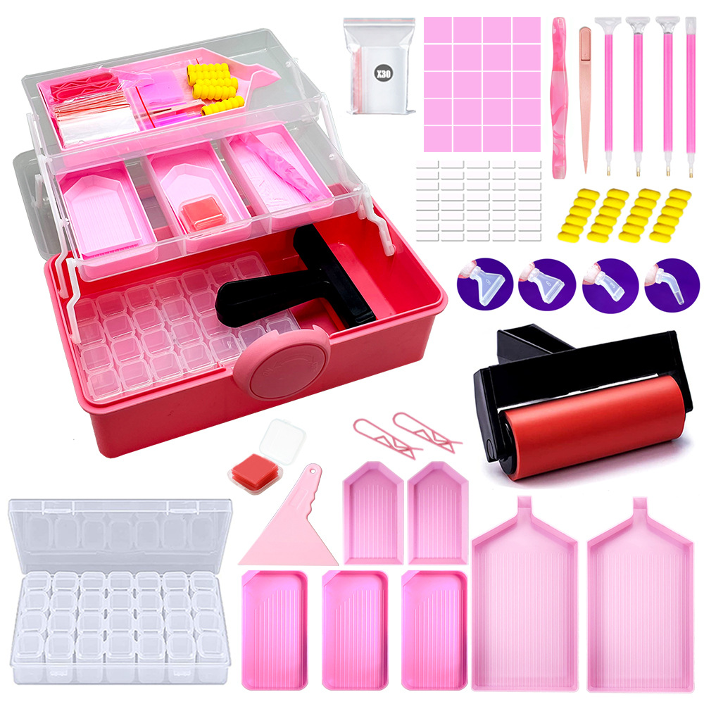 Kit d'outils Diamond Painting avec boîte à 63 Grilles Pincettes