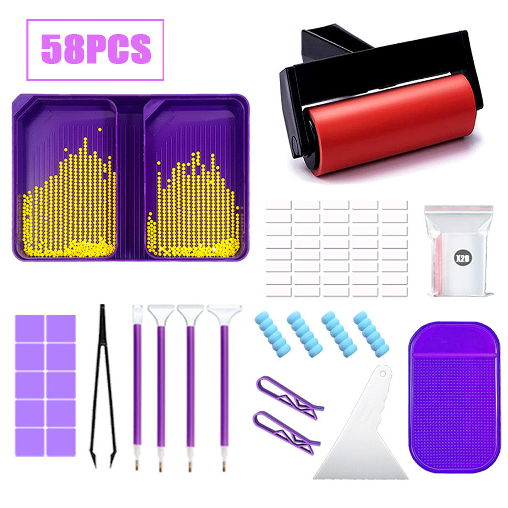 58pcs Outil de Peinture Diamant à Grand Plateau et Rouleau