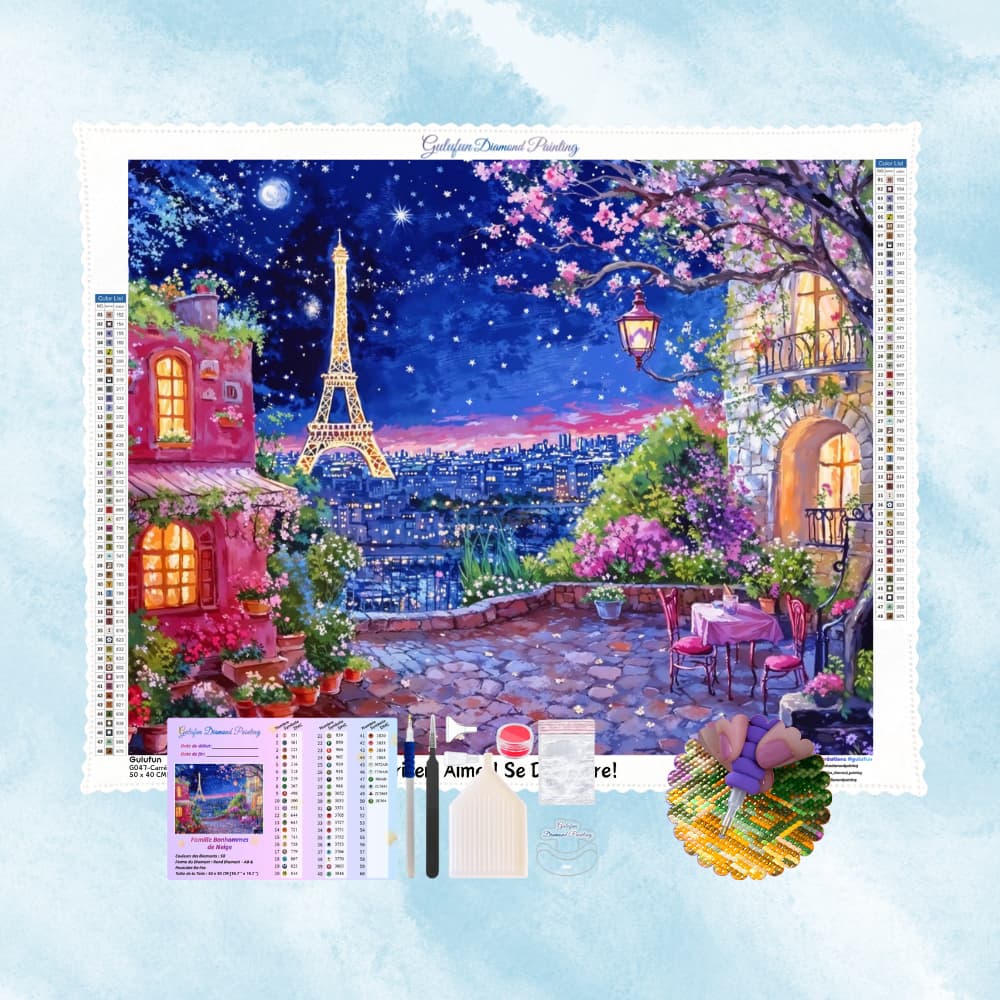 La diamond painting de Paris est comme un poème romantique brillant. Chaque diamant est une étoile, soulignant le charmant paysage de Paris. La Tour Eiffel brille d'une lumière dorée sous un décor de diamants, comme le phare le plus éblouissant de la nuit, témoin des vœux des amoureux. Les vagues scintillantes de la Seine sont astucieusement présentées par des diamants, et les bâtiments des deux côtés de la rivière reçoivent également une couleur de rêve grâce aux diamants, donnant aux gens l'impression d'être dans les rues poétiques et romantiques de Paris, ressentant la tendresse et la douceur uniques de cette ville.