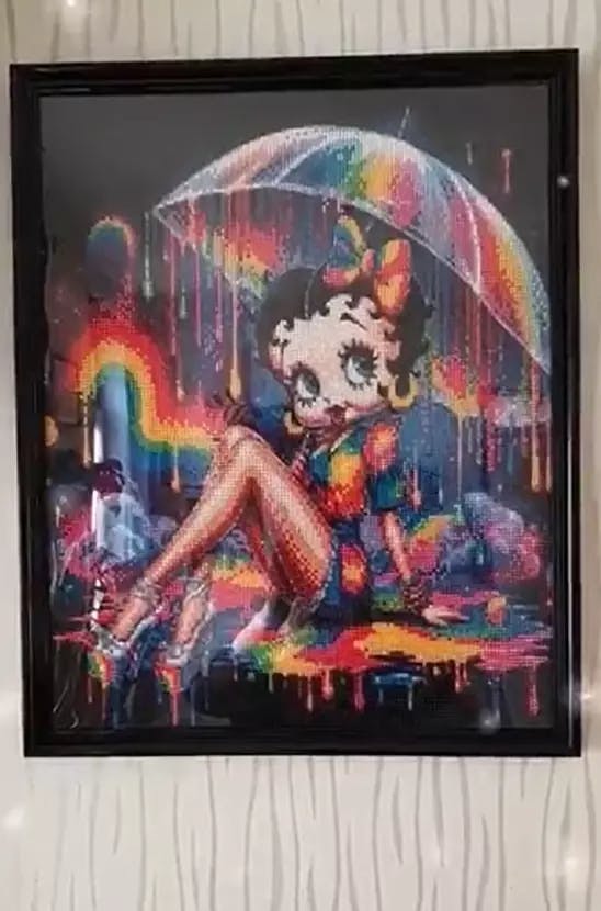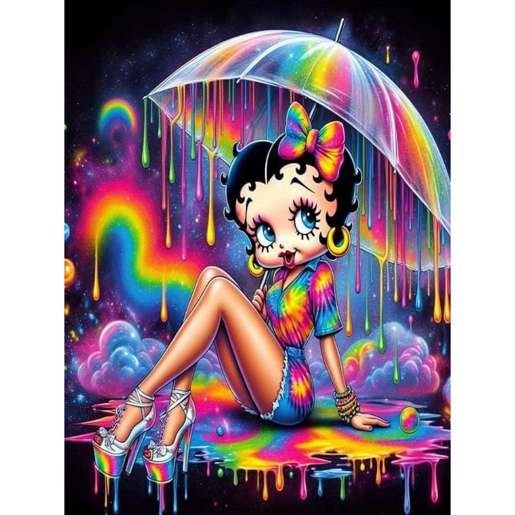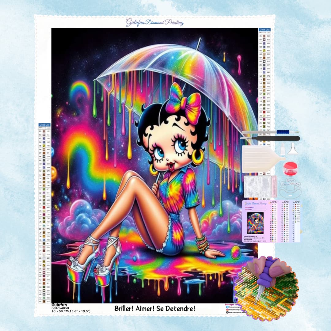 This is so cute! 😍 Who can resist such a colorful and childish Betty Boop? 🌈 With a rainbow umbrella on her head and high heels on her feet, she's sweet but a little sexy~💖