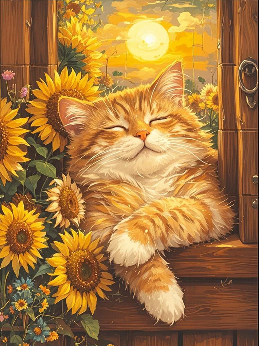 Clusters of sunflowers seem to guard this peaceful dream, painting a tranquil pastoral poem.