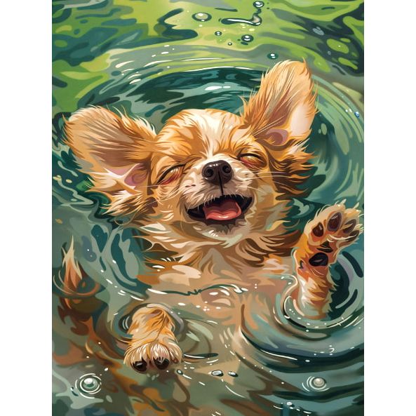 I swam happily in the sparkling water, squinting to enjoy the comfort. The waves gently surrounded me, and happiness spread with the ripples.