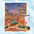 Streetlights are scattered like stars, and vehicles pass by, highlighting the romantic poetry of Paris at night.