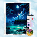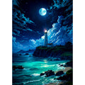 The bright moon hangs high in the sky, casting its soft light and illuminating the calm night. 🌙The waves crashed against the rocks, murmuring softly. The lighthouse stands tall, like a faithful guardian, guiding lost ships.