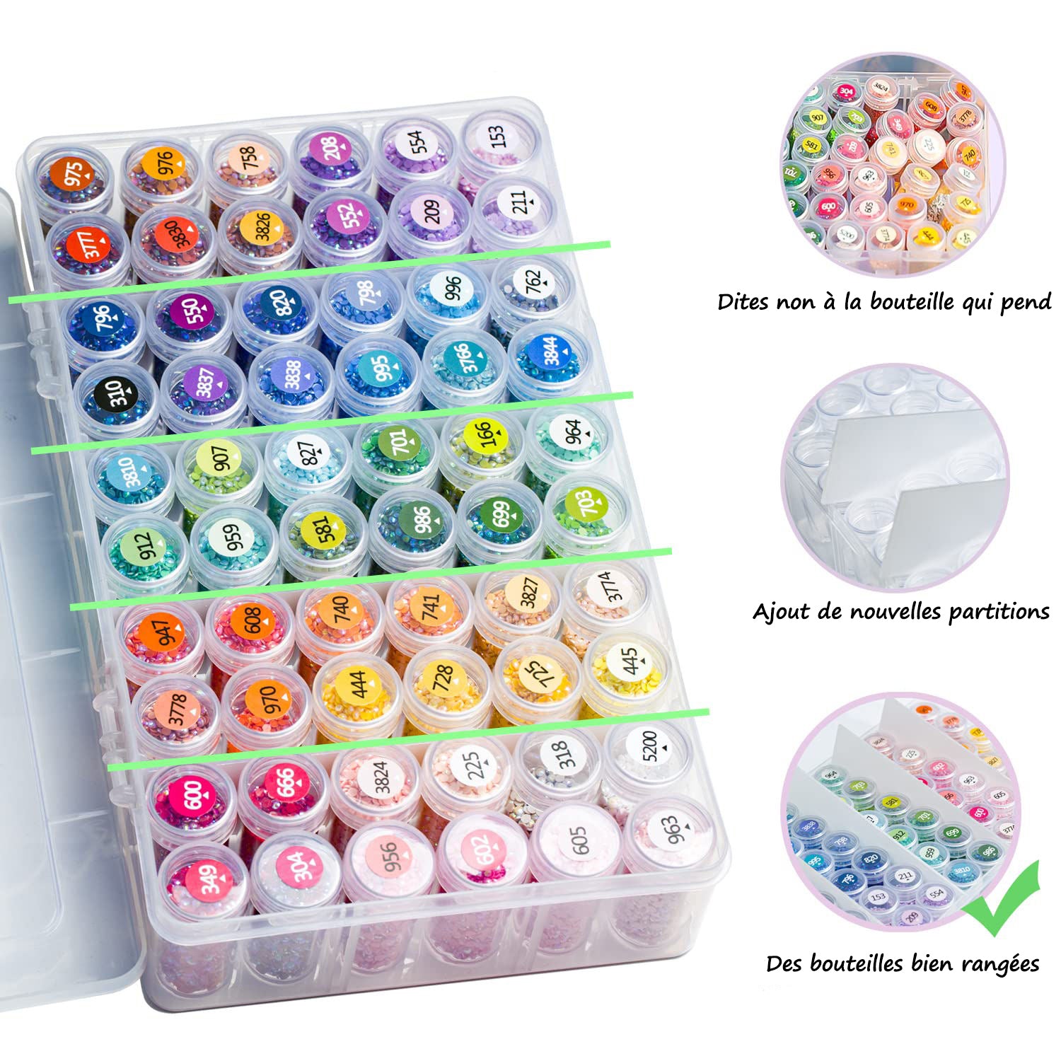 L'organisateur ultime pour toutes vos fournitures de peinture diamant et plus encore ! Fabriquée en plastique durable, notre boîte de rangement est conçue pour être étanche à la poussière, à l'eau et incroyablement robuste, garantissant une utilisation durable. Chaque petite boîte individuelle est dotée d'un bouchon à vis étanche et de fils de soie qui fonctionnent en douceur, gardant vos articles bien rangés et facilement accessibles chaque fois que l'inspiration vous vient.
