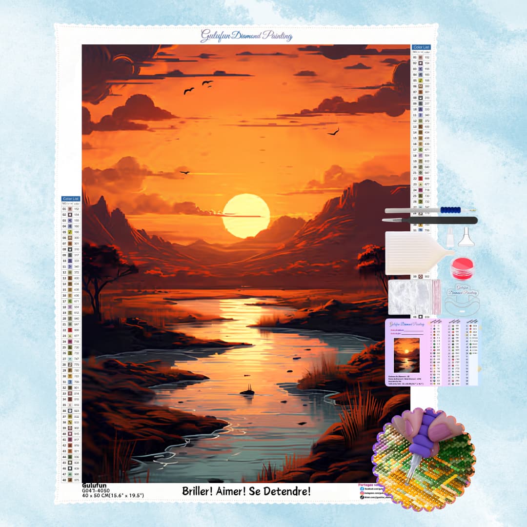 Le ciel orange était comme une palette de peinture renversée, saupoudrant doucement les montagnes et les rivières, et les oiseaux volaient dans le ciel. 🌅