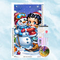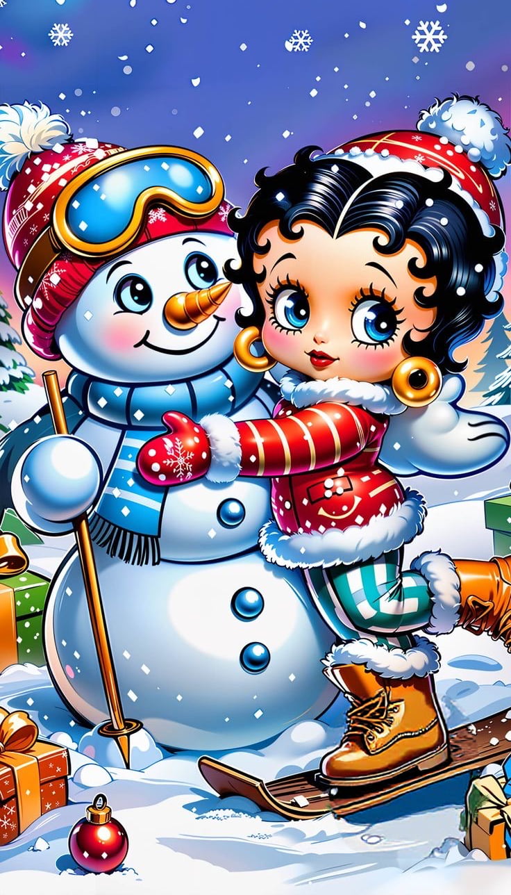 Betty Boop cligna de ses grands yeux et se blottit contre le bonhomme de neige,sa robe rouge contrastant magnifiquement avec la neige.Les cadeaux de Noël sont éparpillés,les flocons de neige tombent doucement,pleins de plaisir hivernal,comme s'ils ramenaient le spectateur à l'enfance innocente et belle.