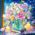 Le vase transparent est un récipient magique, et les fleurs à l'intérieur sont des fées enchantées qui se réveillent au moment magique de la nuit. Les bougies allumées sont les feux de joie des fées, qui gambadent autour des fleurs. Le ciel nocturne à l'extérieur de la fenêtre est une forêt magique mystérieuse, les lumières scintillantes sont les trésors mystérieux au plus profond de la forêt et les papillons sont les messagers qui transmettent des secrets magiques. Chaque endroit est rempli d’une atmosphère magique.