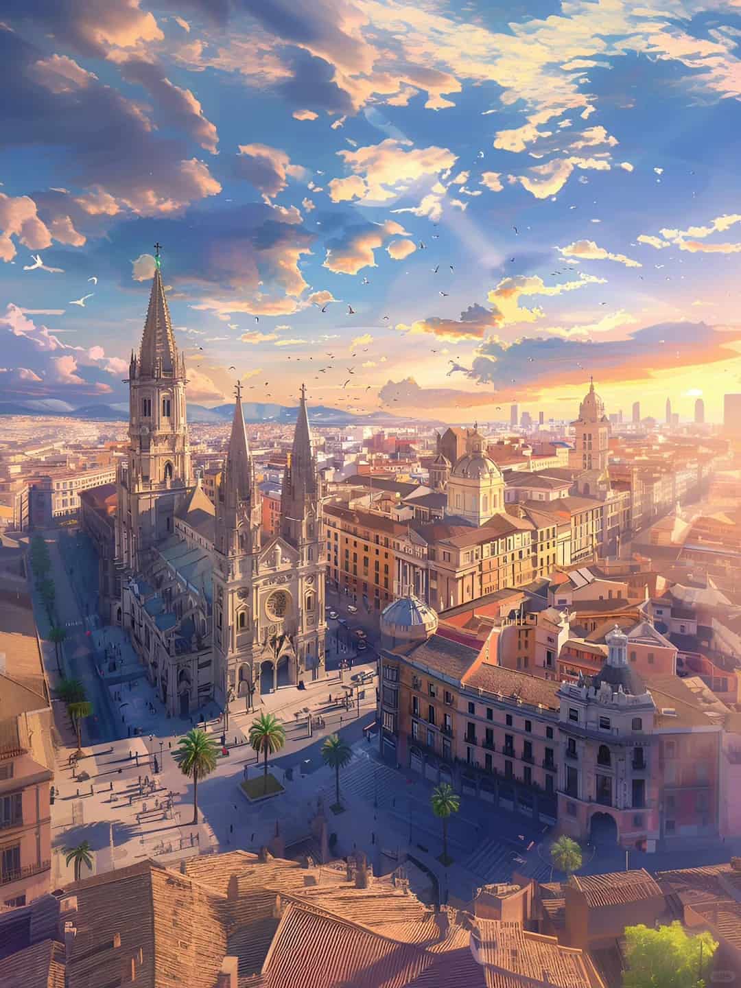 Bajo el sol poniente, la ciudad se yergue silenciosa como un hombre sabio que ha experimentado muchas dificultades, contando a la gente historias del pasado y transmitiendo el patrimonio cultural y la memoria histórica únicos de esta ciudad-estado española.