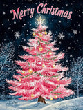Its warm pink hues and shiny gold ornaments glow sweet and bright in the dark night—even the snow-dusted branches feel so fluffy and soft.