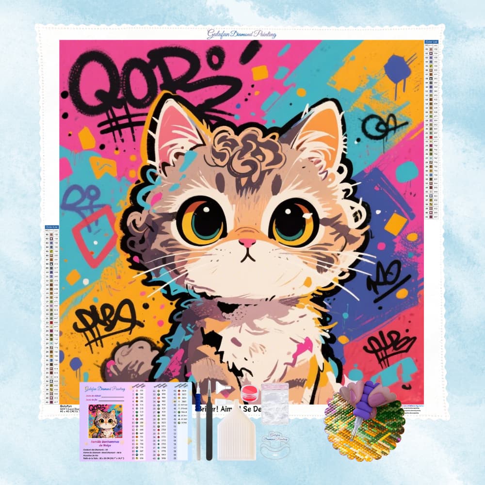 Cuando los lindos gatos irrumpen en el colorido mundo del grafiti, los colores y la ternura se abrazan y crean un rincón de ensueño.