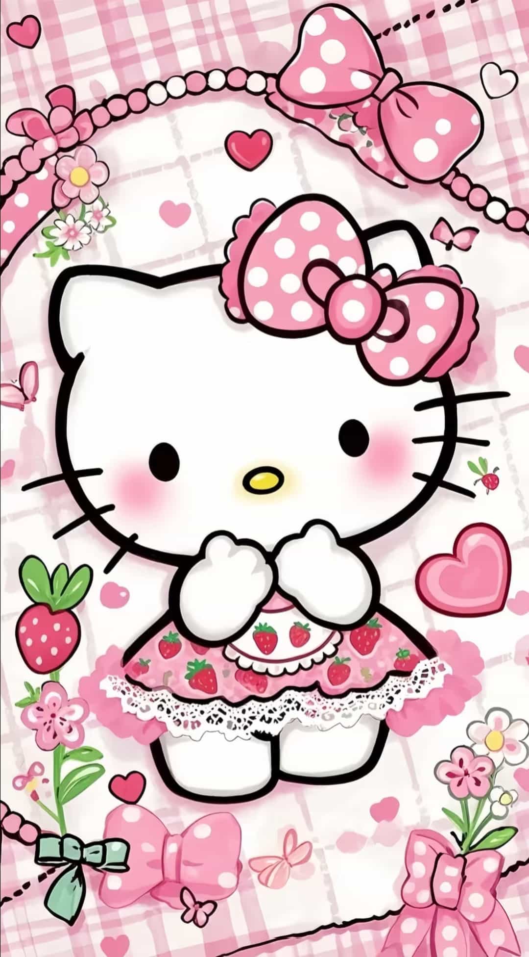 Hello Kitty est entourée de plein d’éléments mignons roses !