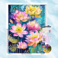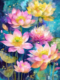 Sur cette toile, les délicates fleurs de lotus ressemblent à des fées sortant d'un rêve.