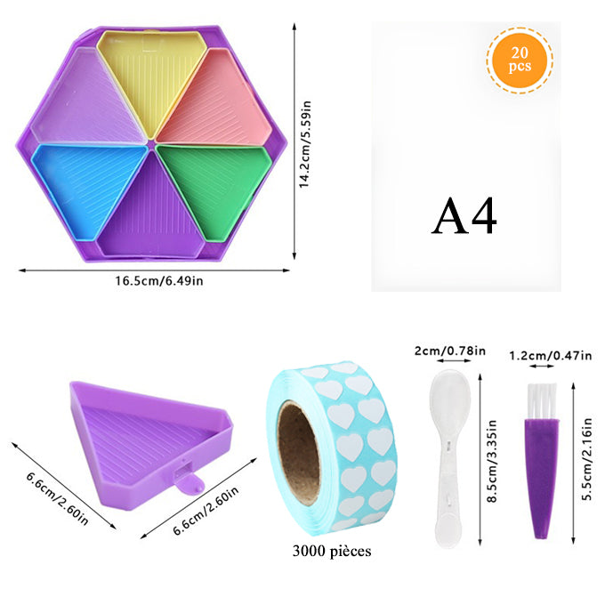 principalement fabriquée en plastique, avec une conception de grille hexagonale, elle peut classer les particules de diamant de différentes couleurs,ce qui facilite la sélection des diamants en comparant les motifs.