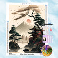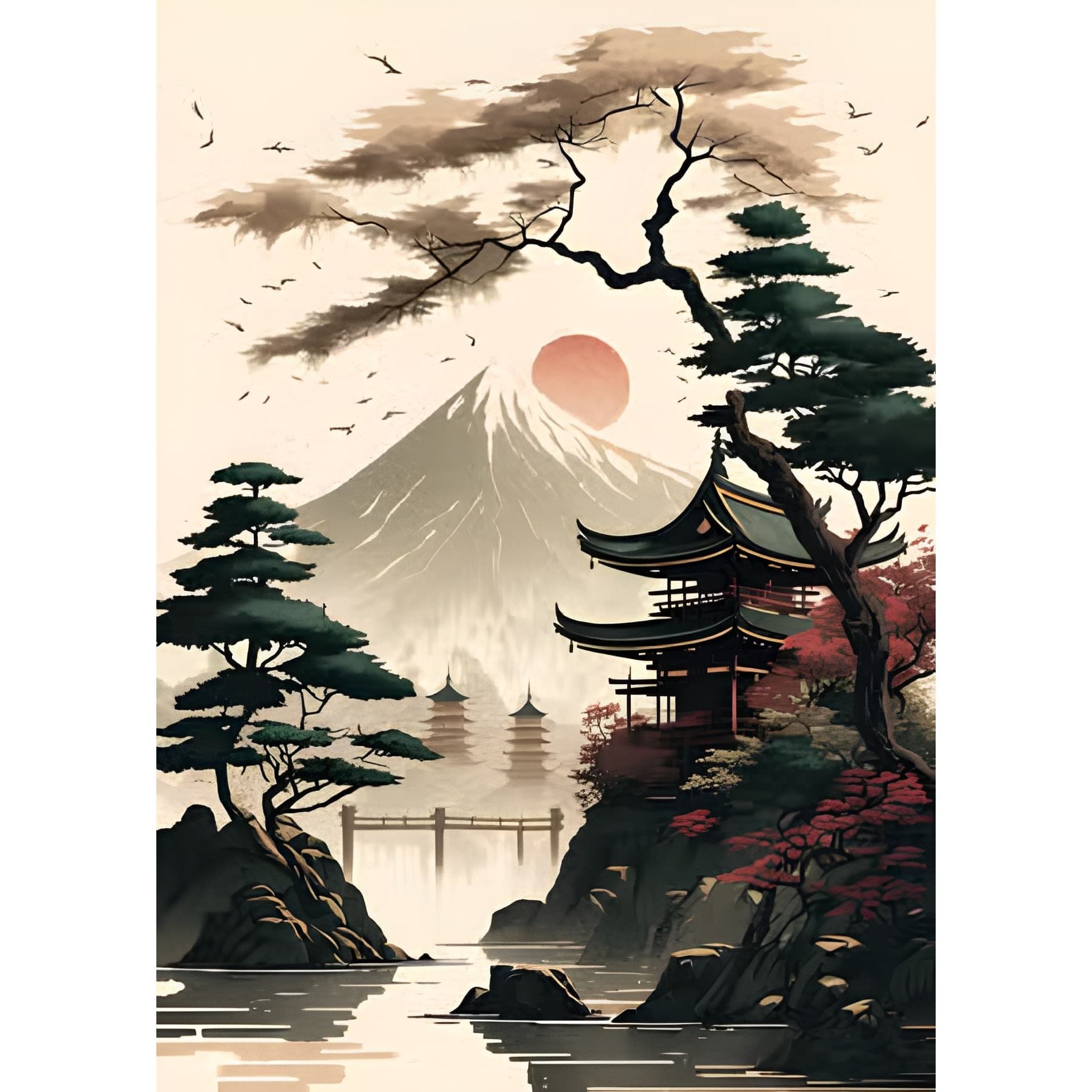 🏯Les montagnes lointaines sont bleu foncé, les pavillons et les tours sont cachés parmi les arbres luxuriants, un soleil rouge se lève lentement et la lumière et l'ombre s'entremêlent, tout comme une belle peinture de paysage ! 🖼️