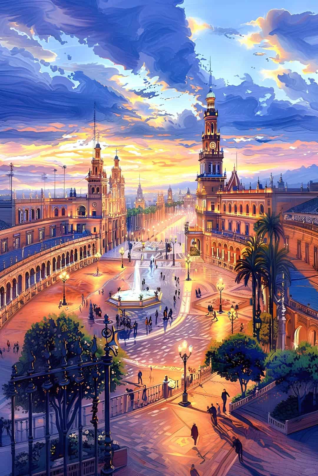 Cuando el anochecer penetra suavemente en la Plaza de Sevilla, el mundo parece teñido por un filtro de ensueño.