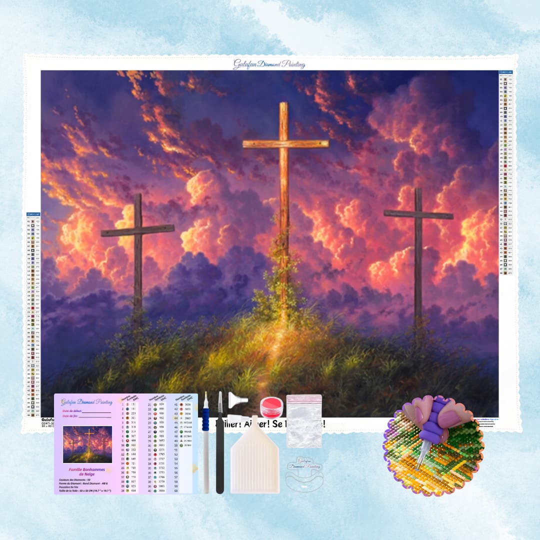 Les magnifiques nuages sont comme une lumière divine,impliquant l'espoir de la rédemption après la souffrance et transmettant l'atmosphère sacrée et la puissance spirituelle propres à la religion.